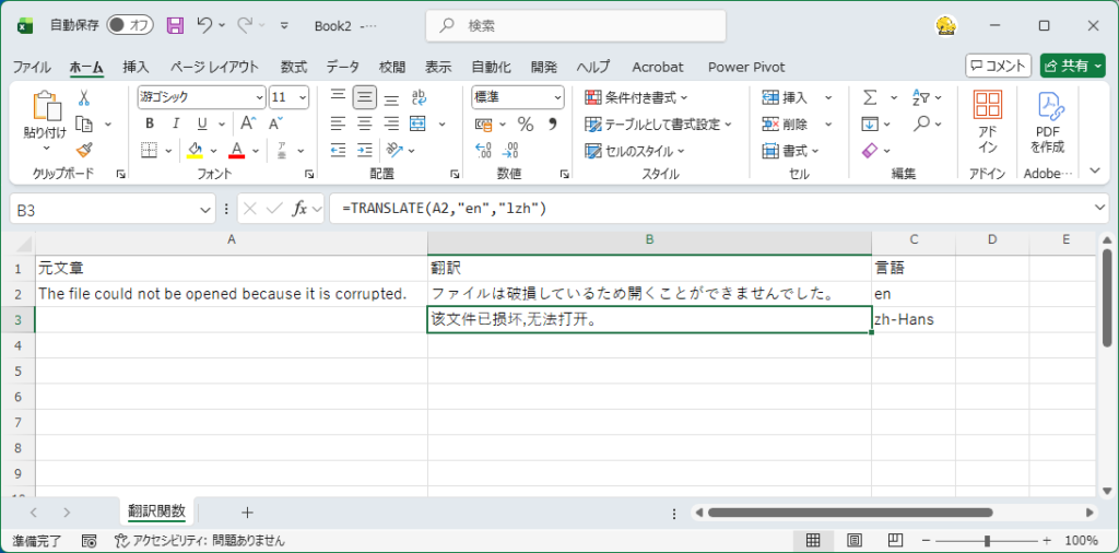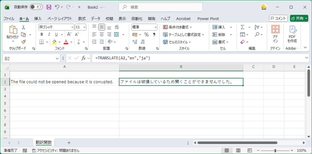 - TRANSLATE関数で即翻訳