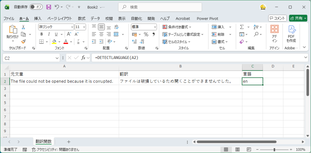 - DETECTLANGUAGE関数で言語判定