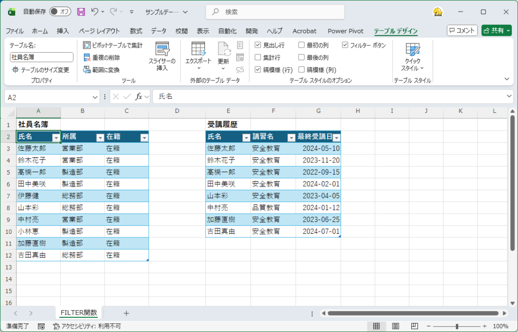 FILTER関数 を使った受講者管理を扱います。