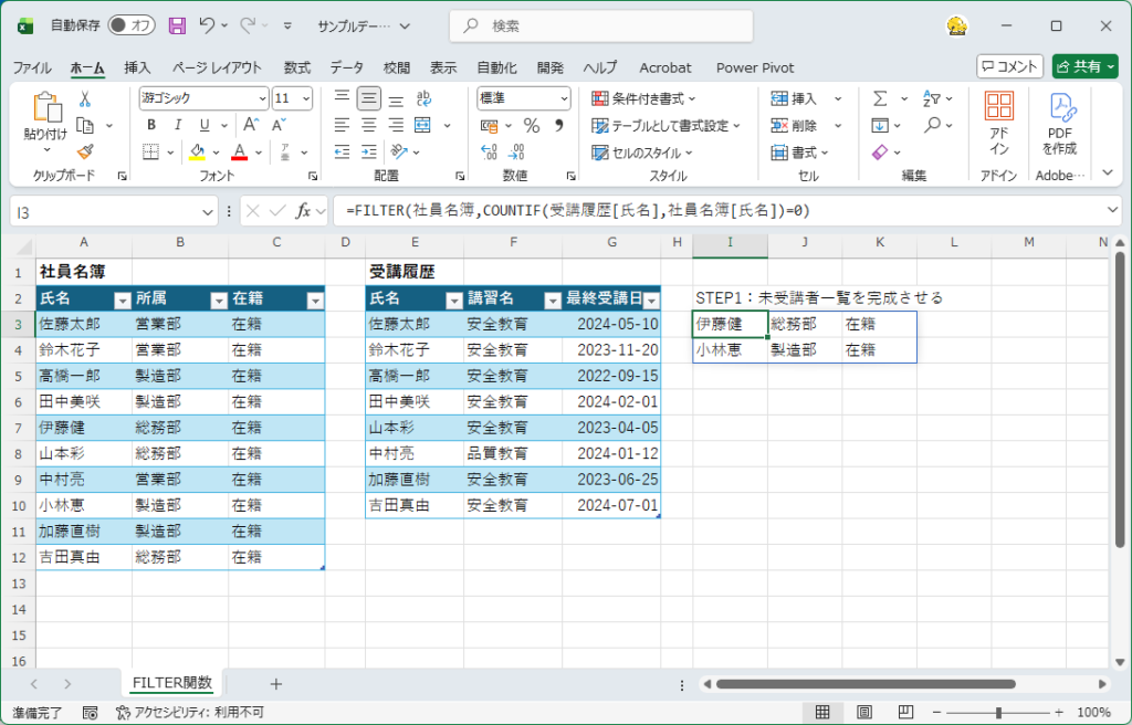 ― FILTER関数で“完成形の受講者管理”を作る ―